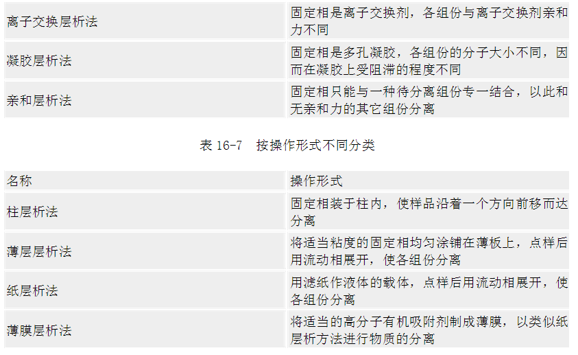 聚焦層析所用凝膠主要有兩種:MONOP和多元緩沖液交換劑(PBE)。其中MONOP是帶孔小珠,孔中被帶正電荷的胺基填充,適用于高效聚焦層析。多元緩沖液交換劑是一種交換凝膠,適用作普通聚焦層析的介質。各種凝膠性質見表16-8。