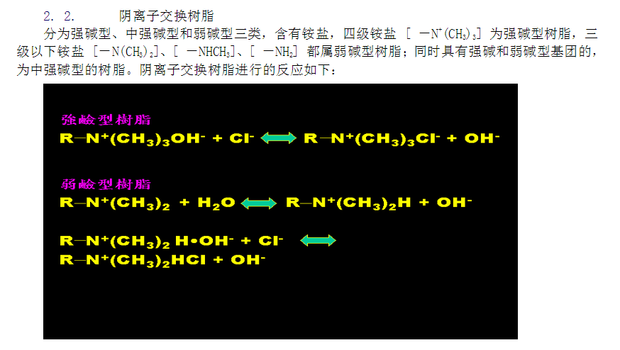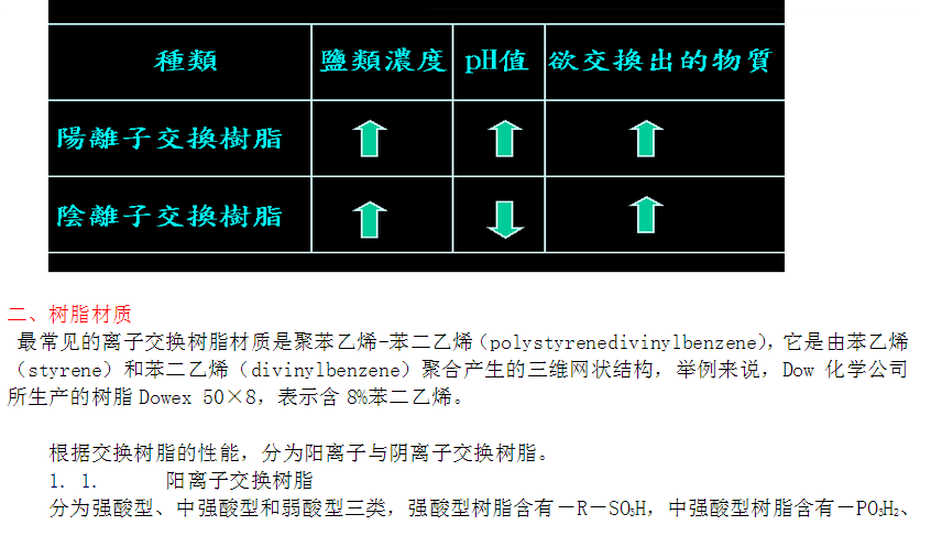 2. 2. 樹脂材質:介紹常用的陰陽離子交換樹脂成份。 #p#分頁標題#e#
